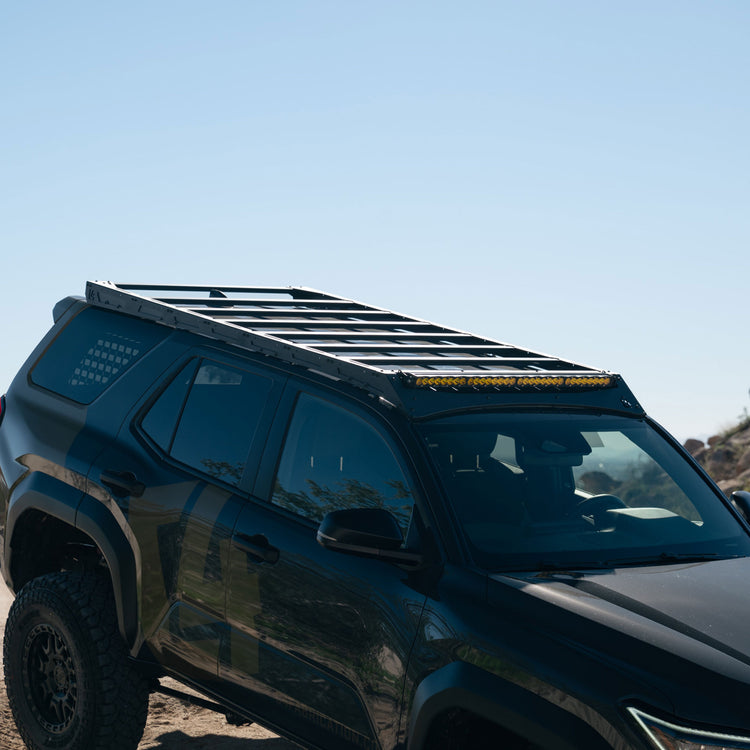 Engineered specifically for the 6th-gen 4Runner, this roof rack system delivers a rigid, low-profile platform designed to support demanding overland, off-road, and utility applications. Precision-cut aluminum construction and a vehicle-specific design ensures maximum strength, minimal added height, and seamless integration with factory mounting points.