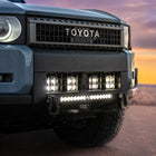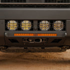 This bumper is engineered to mount a 20" single row light bar, with guaranteed fitment for the Baja Designs S8 20", Heretic Studio 20", and Rigid Industries SR-Series 20". Integrated tabs eliminate the need for bulky mounting legs, spaced at 21-5/8" for precise fit. A behind-the-grille bracket is also included, allowing you to run up to four lights, perfect for setups with LP4s, Squadron XLs, or Rigid 360 Series lights.