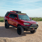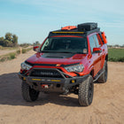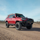 The Overland Series Front Bumper for the 2014–2024 Toyota 4Runner is built for serious off-road performance and added front-end protection. Designed to improve approach angles and offer greater clearance for larger tires, this bumper enhances your 4Runner’s trail capabilities without sacrificing durability or style. It’s constructed from 3/16″ laser-cut P&O steel, with 1/4″ thick mounting plates for solid frame attachment. For added recovery strength, every bumper includes fully welded 3/4″ D-ring tabs, reinforced from both the front and back.